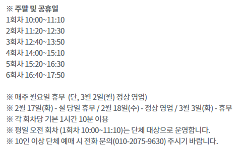 - 관람(이용) 시간: 회차당 70분